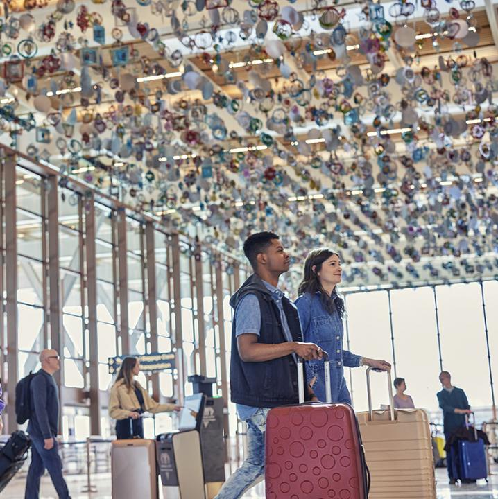 And look to the ceiling as you travel the moving walkways to see Cloud Gazing, recognized among the 100 most successful public art pieces in the world by the CODAawards.